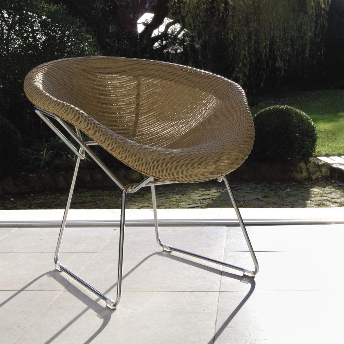 NEMO Modern Loom lounge chair with chrome polished metal base.